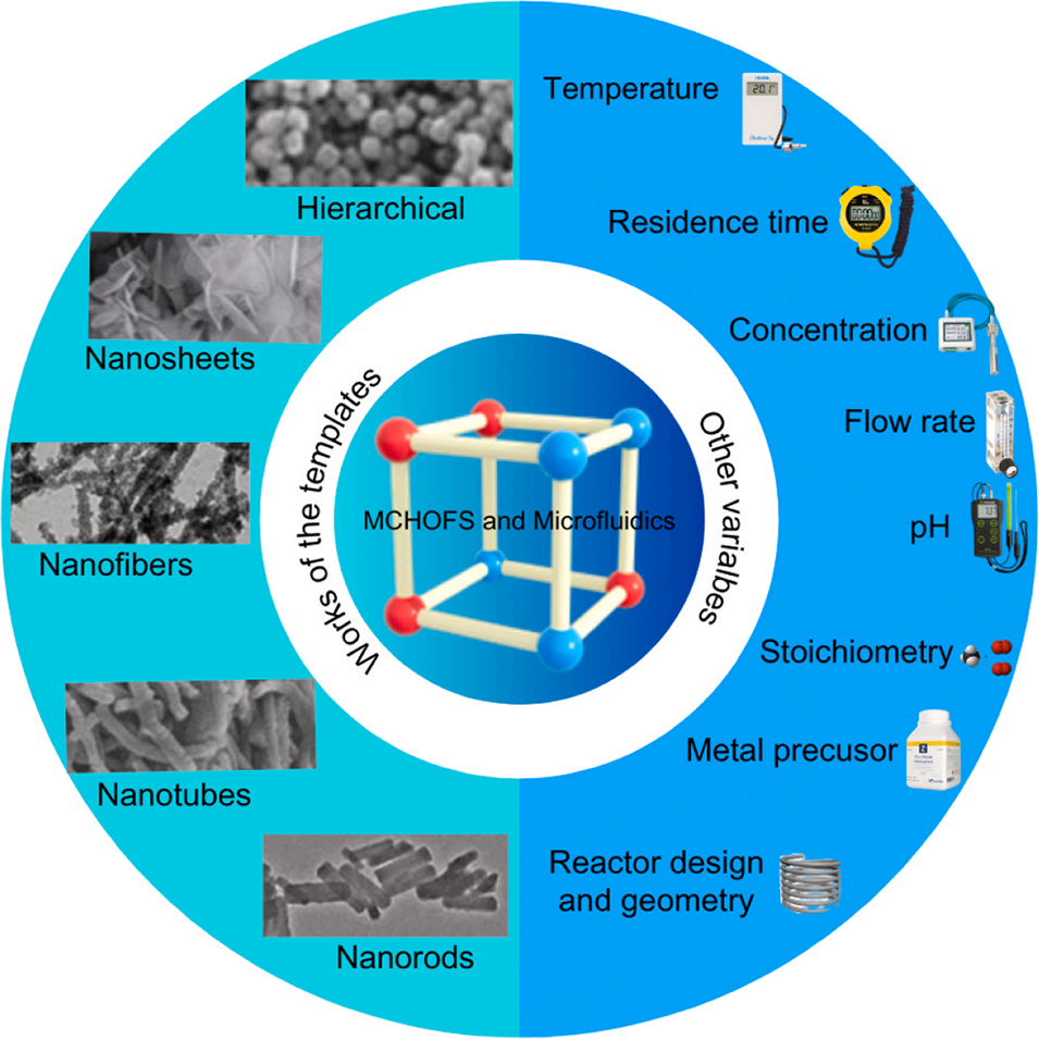 金属有机框架(MOFs)、共价有机框架(COFs)和氢键有机框架(HOFs)(统称MCHOFs)在催化、药物递送、分离和吸附等领域应用广泛。然而,传统合成方法存在动力学缓慢、反应条件控制不精确、产物粒径分布宽及重复性差等问题。微流控合成作为一种绿色高效的替代方案,能精确控制反应条件和产物性能,显著缩短合成时间至分钟级,并减少废物生成。