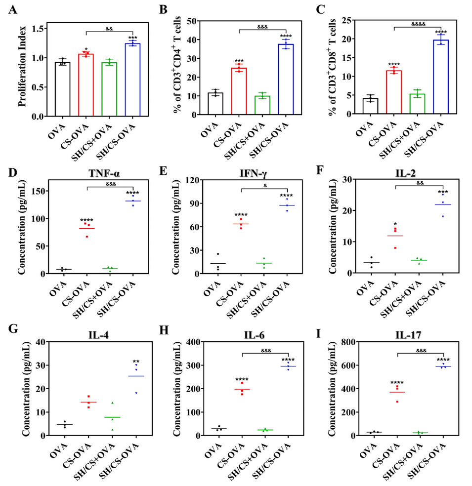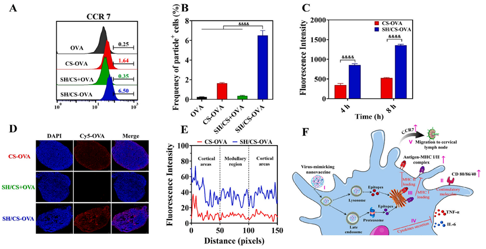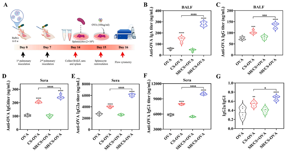 1、本研究开发了一种基于微流控技术的多糖功能化病毒模拟纳米疫苗(SH/CS-OVA),以克服肺部先天生理屏障并增强免疫应答。