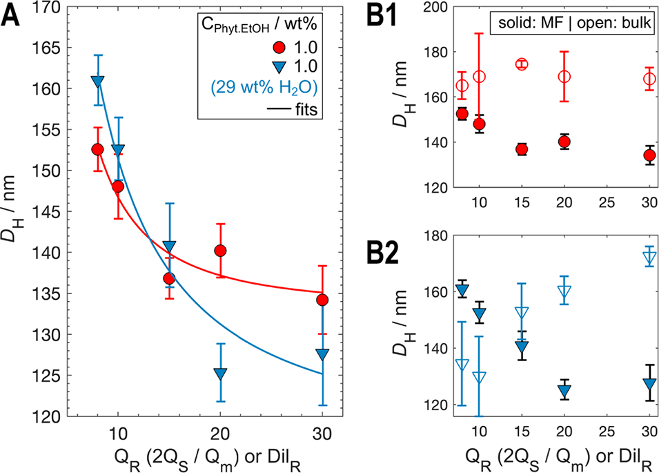 图4. 立方体脂质纳米颗粒粒径随流速比(QR)变化的动态光散射(DLS)表征及建模