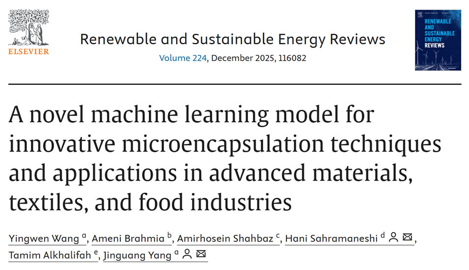近期,中国农业科学院烟草研究所杨金广研究员团队发表综述,系统阐述了创新型微胶囊技术在先进材料、纺织与食品工业中的前沿应用。该文不仅详尽分析了多种微胶囊制备方法的优劣,还引入机器学习模型以揭示关键参数间的复杂关系,为精准设计与优化微胶囊性能提供了新范式。相关研究成果以“A novel machine learning model for innovative microencapsulation techniques and applications in advanced materials, textiles, and food industries”为题,发表在期刊《Renewable and Sustainable Energy Reviews》上。