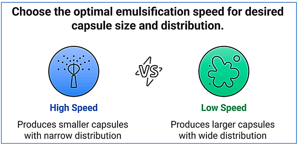 图7. 针对目标胶囊尺寸和分布选择最佳乳化速度