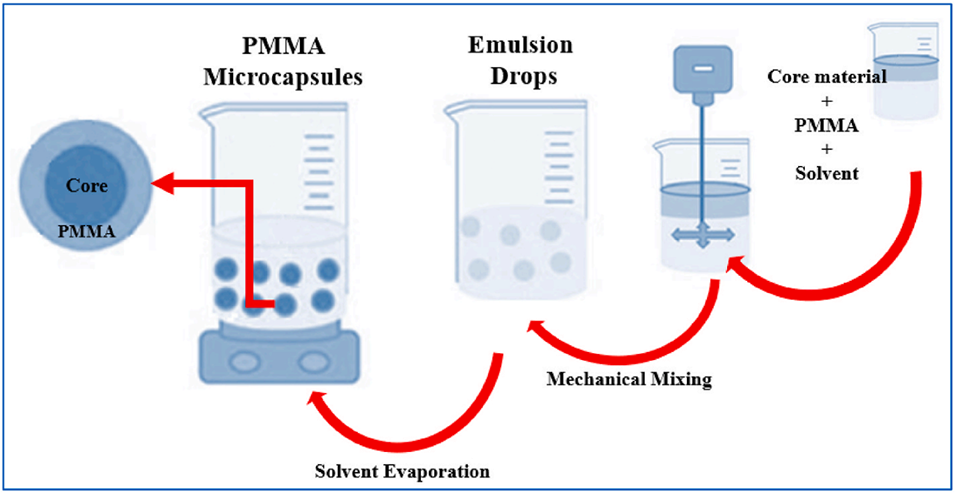 图11. 展示采用溶剂蒸发法以聚甲基丙烯酸甲酯(PMMA)包封材料的过程。