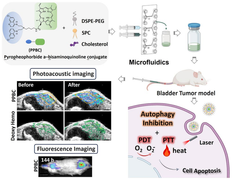 合理设计能够将治疗效果与药物分布和肿瘤状态实时监测相结合的多功能纳米平台正在成为癌症纳米医学中一种有前景的方法。近期,加州大学戴维斯分校生物化学与分子医学系Yuanpei Li教授等人开发了一种多功能纳米平台——焦脱镁叶绿酸a-双氨基喹啉共轭脂质纳米颗粒(PPBC LNPs)。该颗粒通过微流控技术制备,兼具光动力、光热治疗与自噬抑制三重功能,以及光声和荧光双模态成像能力,在膀胱癌模型中实现了高效诊疗并展现出良好临床转化潜力。相关研究以“Multifunctional and Scalable Nanoparticles for Bimodal Image-Guided Phototherapy in Bladder Cancer Treatment”为题目,发表于期刊《Nano-Micro Letters》。