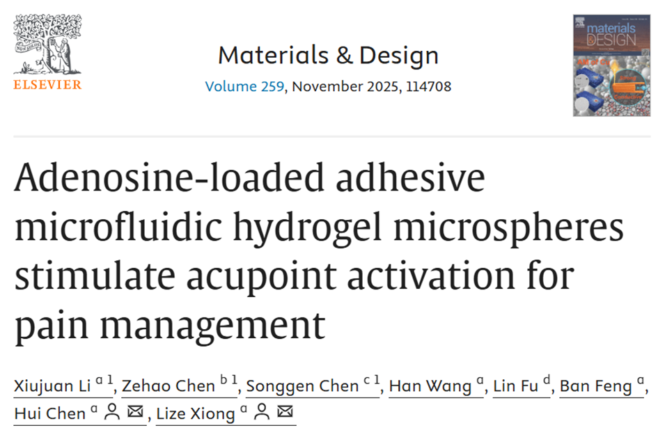 疼痛是一项重大的公共卫生挑战。尽管药物治疗是主要镇痛手段,但其效用受到不良副作用和潜在依赖性的限制。针灸通过刺激穴位发挥镇痛作用,但存在特异性差、参数不明确等问题。近期,同济大学附属上海市第四人民医院麻醉与围术期医学科熊利泽教授、陈辉主任医师等人开发了一种负载腺苷的粘附性水凝胶微球,通过微流控技术制备,能精准附着于ST36穴位并缓慢释放腺苷,模拟针灸的镇痛作用。动物实验表明,单次给药即可实现长达7天的持续镇痛和全身抗炎效果。相关研究以“Adenosine-loaded adhesive microfluidic hydrogel microspheres stimulate acupoint activation for pain management”为题目,发表于期刊《Materials & Design》。